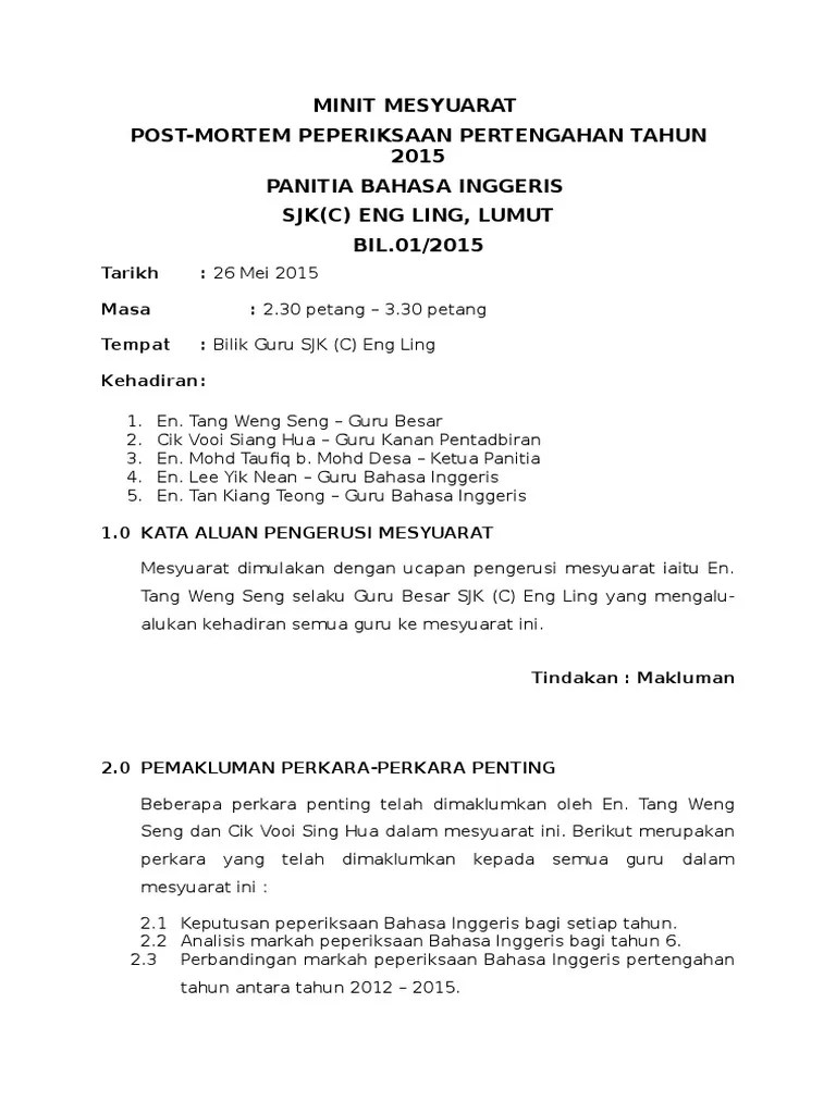 Minit Mesyuarat In English / 1 2 Minit Mesyuarat Panitia Bi 1st Pdf Lesson Plan English Language. Minit mesyuarat kokurikulum kali pertama kk english literature, attendance, reading, reading books. So this one really helps. Contextual translation of minit mesyuarat into english. Susah nak cari contoh minit dlm english. Cina kampung baru tampin tampin, negeri sembilan minute of meeting of the english panel 2013 first date time venue no. Minutes of the meeting :
